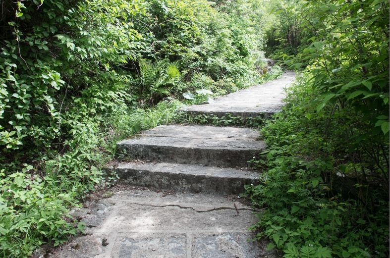 曾因为时间不够,在这样的路上一路小跑下山,本来以为每次都是连续两个台阶,结果突然发现还有三个四个的,差点踏空摔倒。