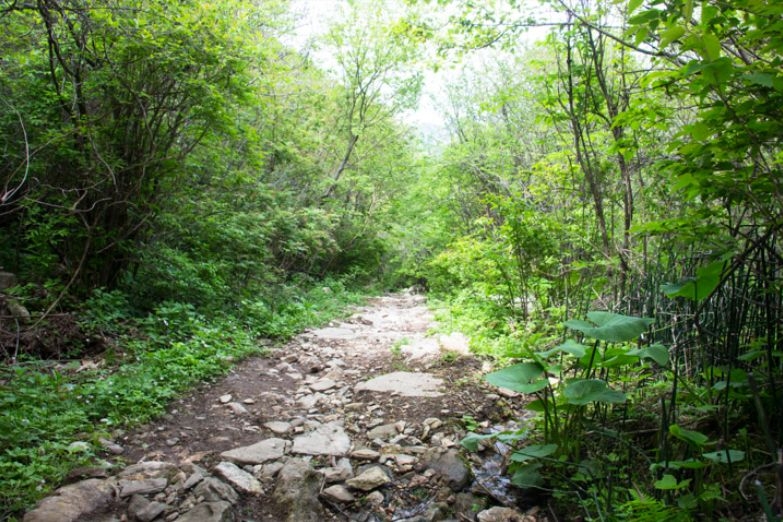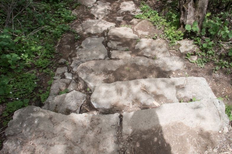 比较简陋的台阶、碎石路(分别如下图),一定要尽可能踩在朝里倾斜的石头上,朝外倾斜的石头很容易滑。每次踩一块石头的时候要感受下石头有没有晃动,如果晃动可以换其他石头,或者轻快的踩过去,不要让石头受力太大。