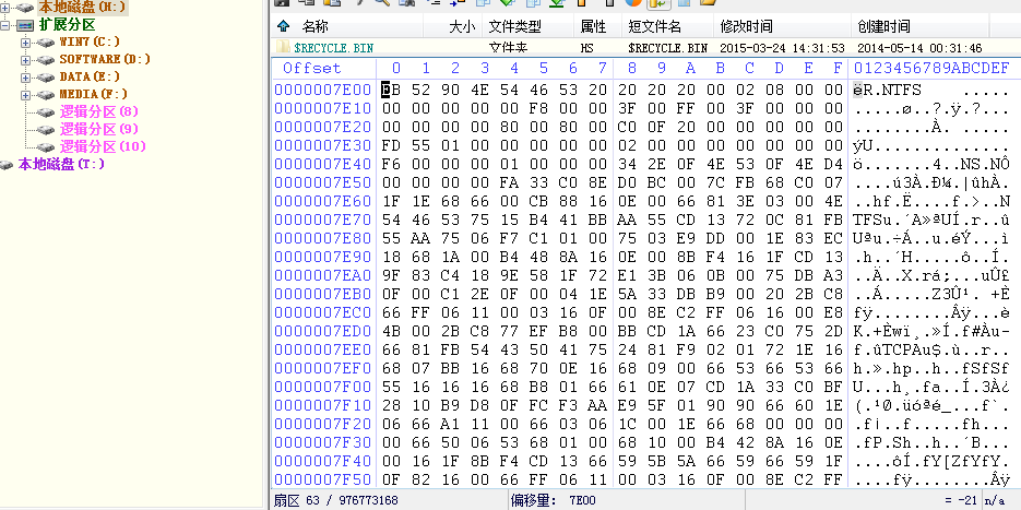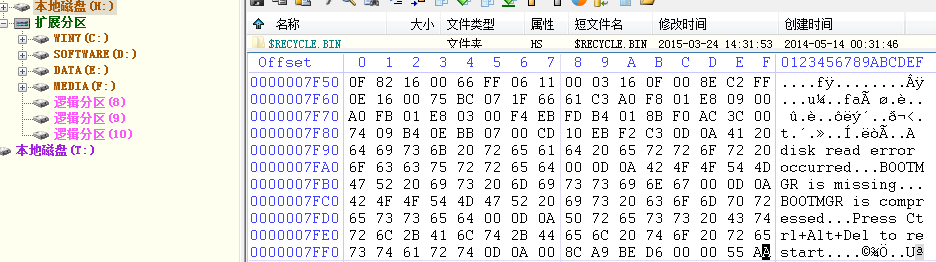 注意区别,主引导记录MBR保存在整个硬盘的第一个扇区,而PBR保存在每个分区的第一个扇区。