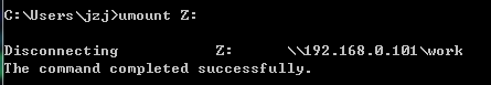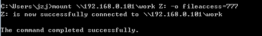 C:\Users\jzj>mount \\192.168.0.101\work Z: -o fileaccess=777