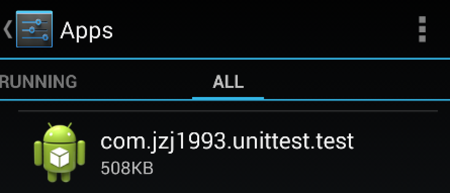 Test Runner中没有Activity界面,因此也不会在启动器上建立快捷方式。但是在设置中的所有应用里,可以看到这个APP,如图。