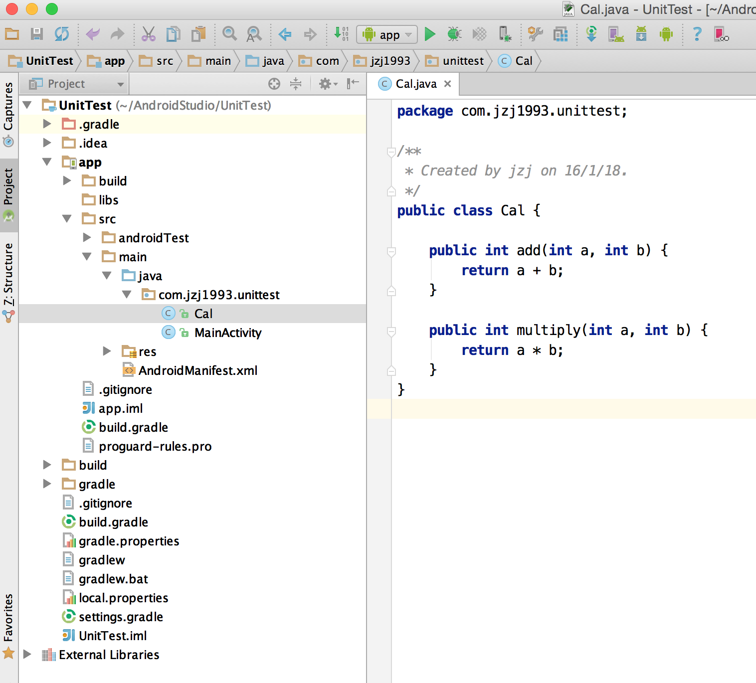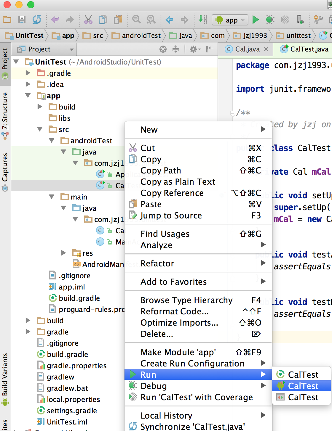 在App中创建一个待测试类Cal