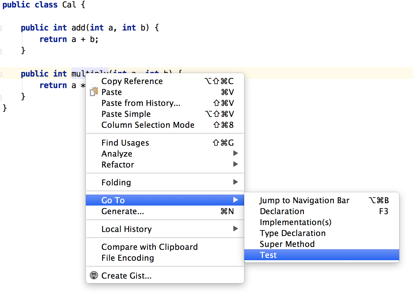public int multiply(int a, int b) { -