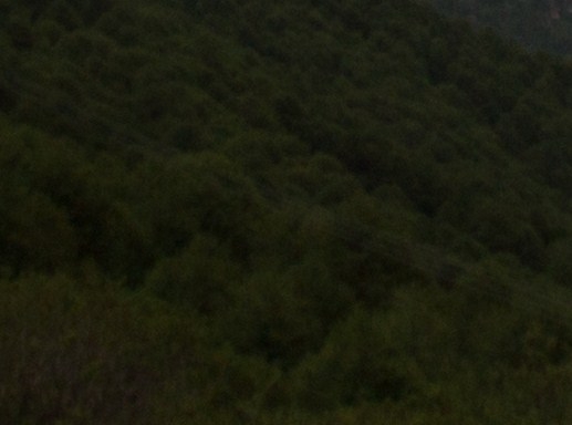 注意拖动的时候要权衡好,如果拖动的太多,噪点是消除了,但是照片的细节也会被消除。例如照片下方的树,原图的噪点很多。
