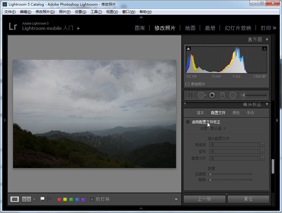 我一般最先进行镜头校正的操作,因为这项操作会影响照片的亮度。