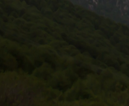 减少杂色拖动到100%,噪点是没了,但是树也被模糊了,看不清了。