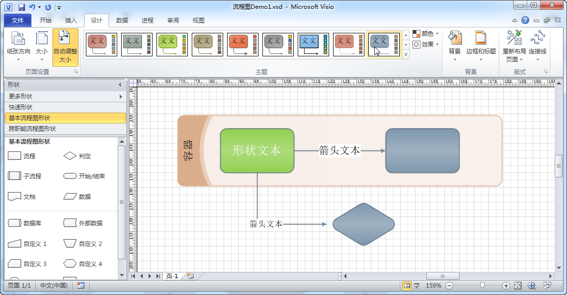 可在设计菜单中,快速设置文档中所有元素的风格。