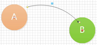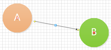 两端的蓝色锚点可以控制箭头的断点,例如可以将其分别拖动到两个圆形的中心,如图。