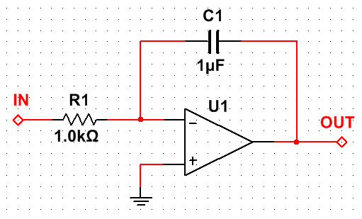 模拟电路尤其是高频/射频,难度往往很大,除了需要较多理论知识,还需要大量经验积累。做电赛的时深有体会,模拟电路的设计不容易,即使是最简单的运放积分器。理想情况下,积分器电路如下图,理论分析也比较简单(学过信号系统和模电的人应该能理解,这里不做分析)。