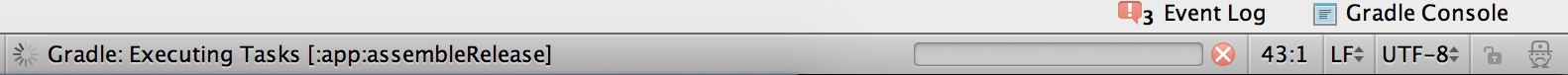 之后进行对比可以发现,如果使用的不是Debug,而是例如Release,Android Studio右下角显示的Task只有一个assembleRelease