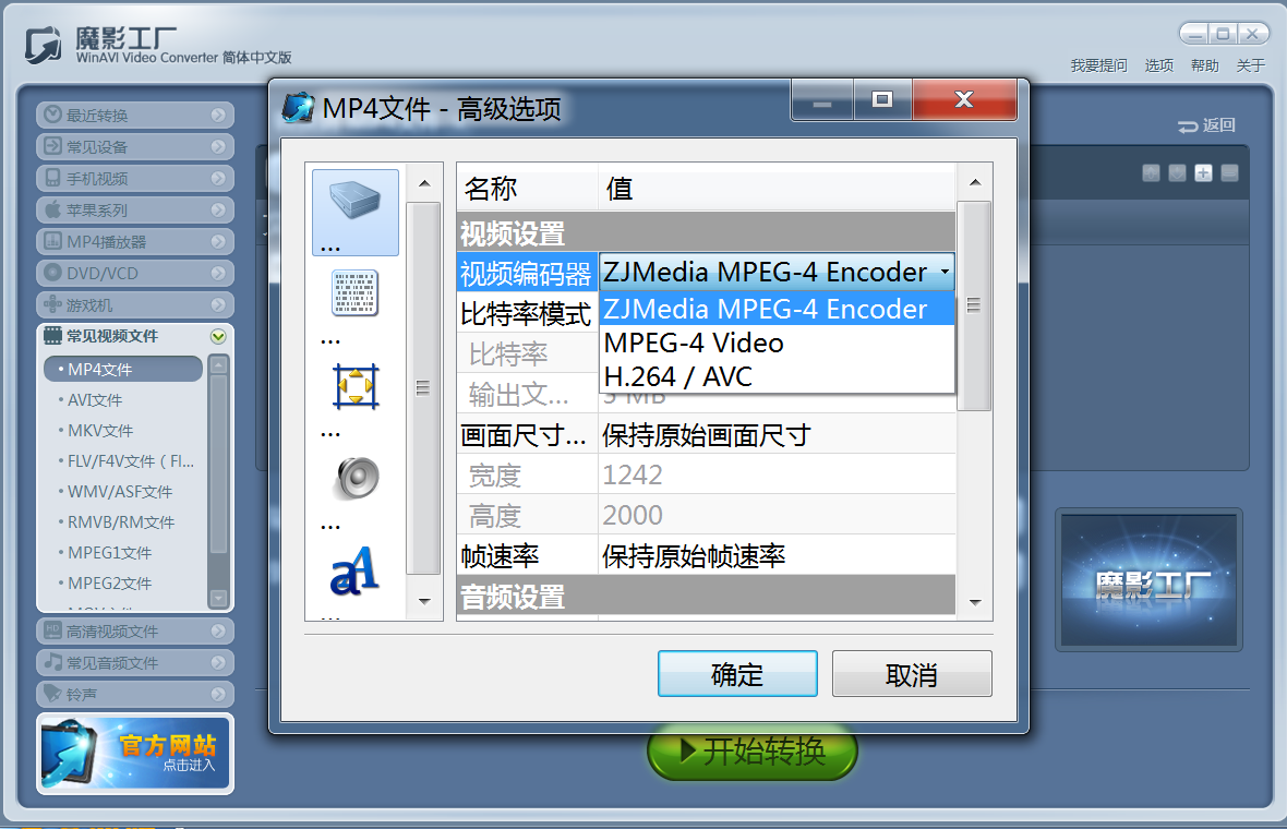之后又下载了其他几个视频转换软件,也尝试了很多中转换输出格式,最后发现使用“魔影工厂”转换的通用MP4格式可以被播放,但是一直想不明白为什么。详细查看了这几个视频的参数,也找了一些MP4视频编码相关的文章,还有视频转换软件中的参数设置,最后终于发现了问题。