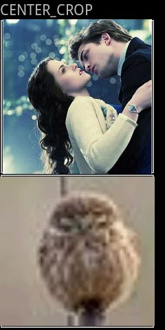 CENTER_CROP:取图片中间最大的正方形区域,等比缩放后展示,填满ImageView。