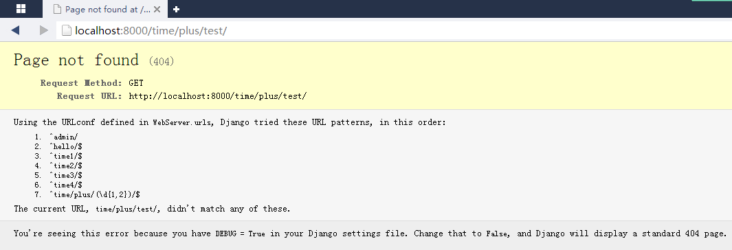 如果输入的url中的offset参数是test,而不是数字,则会返回404页面。因为这个url不能匹配URL路由设置中的任何一条路由。