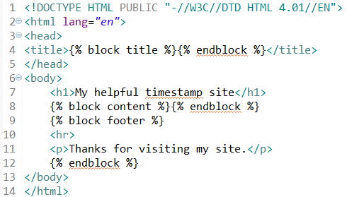 Django使用了MVC的设计思想,下面我们添加模板文件。模板文件可以继承,首先在templates目录中写一个父模板文件base.html。