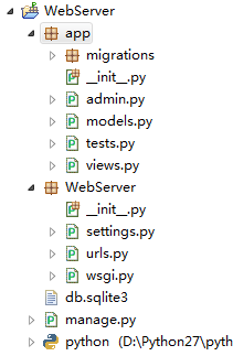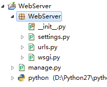 在Eclipse中新建PyDev工程,取名WebServer,创建的工程中就会包含上一步自动生成的文件