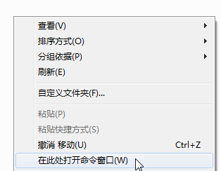 Windows环境下,按住Shift键,在工程目录中空白处右击,选择“在此处打开命令窗口”,即可快速启动cmd窗口。