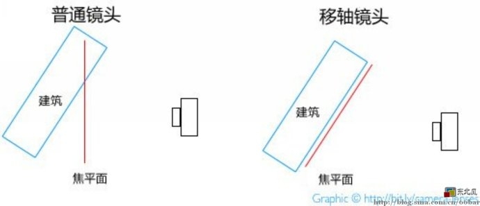 移轴镜头可以创造倾斜的焦平面。用普通镜头拍摄建筑物有时会遇到问题:如果你与建筑之间有角度,就无法令建筑物的一个面都在焦平面上。为了保证照片清晰,你必须使用小光圈,这可能会带来一些额外的问题。