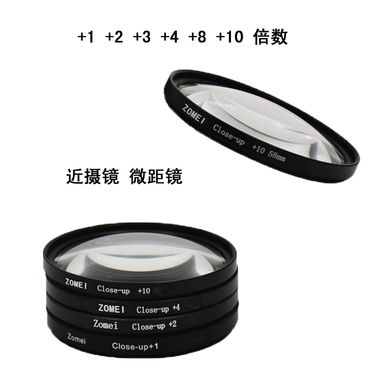 例如在镜头前放上一个合适的放大镜,就能有一定的放大效果,也就是淘宝上很常见的近摄镜(另外还有一种增距镜也被叫做望远镜,可以增加拍摄距离,构成长焦镜头的效果,和近摄镜相反)。近摄镜本质也就是凸透镜,和相机镜头叠加,缩小了镜头的焦距,使得像距相对焦距而言加大了,从而实现微距效果。