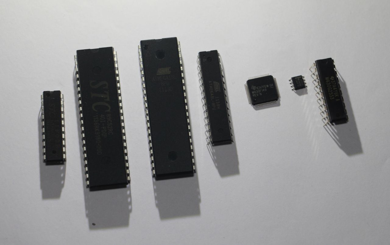 在计算机发展的同时,另一种大家相对陌生的东西也在悄悄发展着。在1971年,全球第一个计算机微处理器4004由美国Intel公司推出的同时,一种称之为单片机的技术也逐渐发展并得到广泛应用。单片机全称单片微型计算机,又称为微型控制器,英文名MCU(Micro Control Unit),可以理解为精简版的计算机。单片机相当于将计算机中的各个主要部件,CPU、存储器、IO口、中断系统等封装在一个集成电路芯片中。初学者或许对这些名词很陌生,但是不需要担心,关于他们分别是什么,后面会给大家介绍。下面是一些现在常见的单片机。