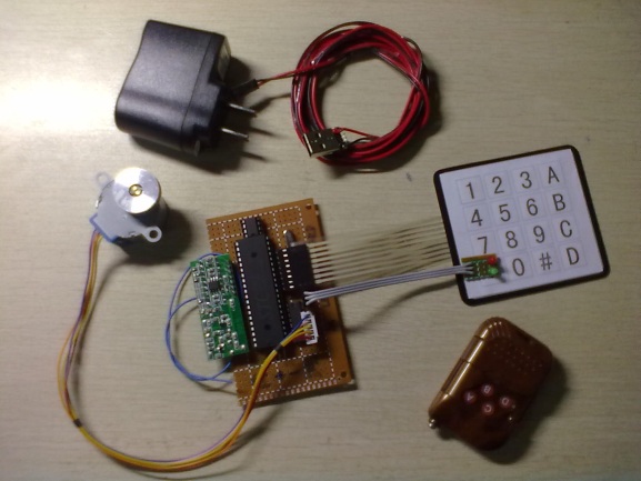 宿舍常常有人不记得带钥匙,或者出去有事带钥匙不方便,比如说去打篮球。然后几个人一起回来,大眼瞪小眼,都没拿钥匙,门都开不了,只好求助楼管。于是我在宿舍门上装了一个电子密码锁,门外是按键和指示灯,门里面是单片机和电机,电机通过细线可以把门打开。你可能会担心安全问题,实际上完全不用担心。我们的密码锁,只有在单片机工作正常、且输入密码正确的情况下,才会启动电机开门。密码可以任意修改,只要你愿意,可以输入几百位的密码。当然也完全没这必要。连续三次输入密码错误,还会亮起红灯锁定,禁止再次尝试输入密码,要等几分钟才能解锁。所以想把密码试出来也是不太现实的。如果不幸单片机没电了,或者密码锁坏了,也不用担心。它的工作原理决定了,那种情况下,只是不能输入密码开门了,门完全不可能自己被电机打开。所以安全性是毋庸置疑的。