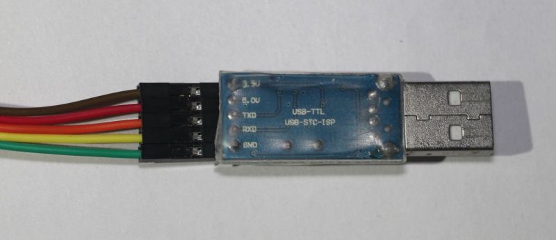 USB-TTL转接板反面(连接了杜邦线母头)