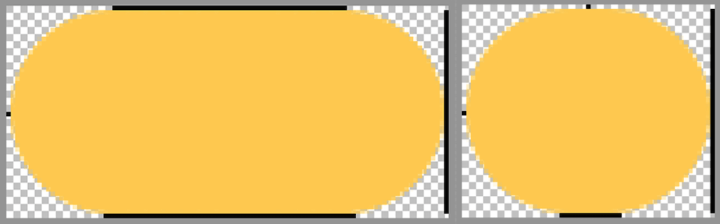 - 拉伸时,水平和垂直方向,会分别按照定义的一个或多个拉伸区域,按比例均匀拉伸。