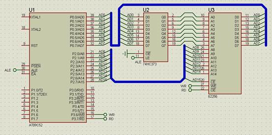 如图所示,使用总线代表将俩个元件,相同标号引脚进行电气连接