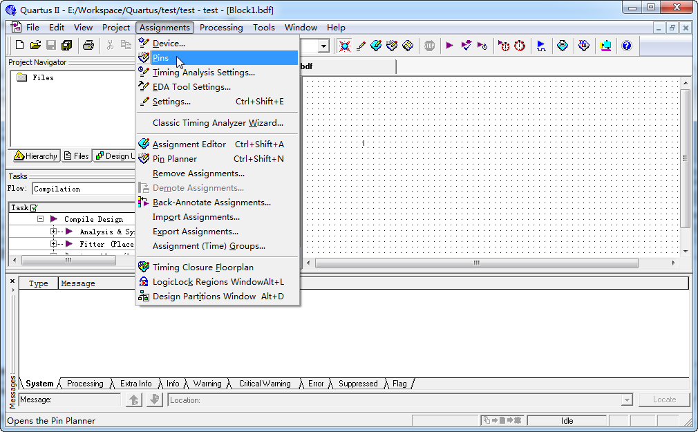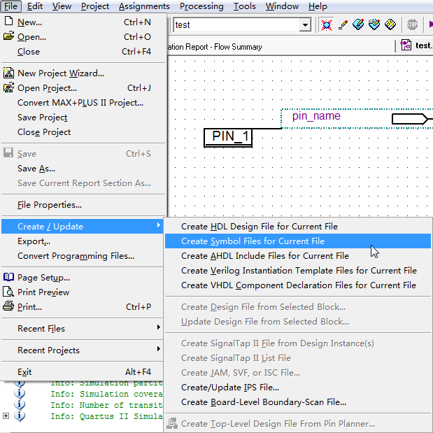 可选择菜单File --> Create/Update --> Create Symbol Files for Current File,将设计文件导出为模块。在设计文件Block Diagram(框图)中,可以像插入元件一样,插入设计好的模块。