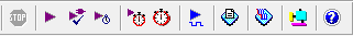 紫色三角按钮用于综合(编译),蓝色三角按钮用于仿真