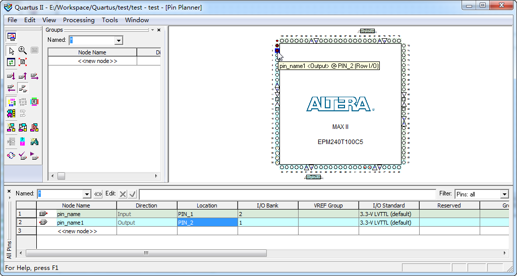 分配好管脚就会显示在电路图中(分配完管脚需要重新综合,才可以下载到板子中)