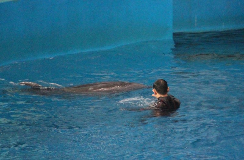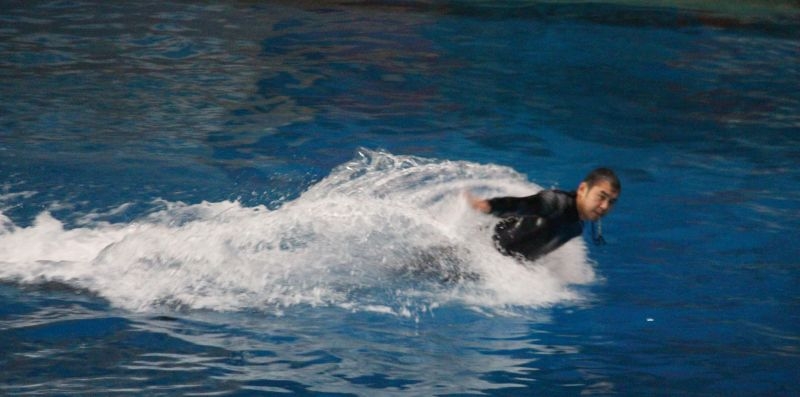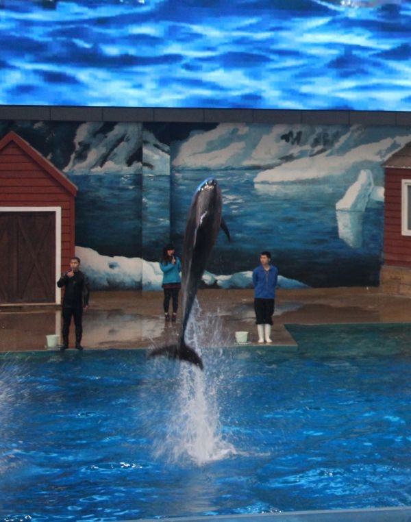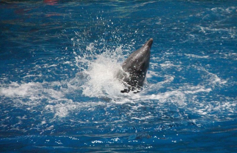 因为我们走的太快,全程只用了三四个小时……感觉比较适合科普,如果对于那些动物的名字什么的没兴趣,估计很快就看完了。全程我几乎一直在拍照,因为室内光线实在太暗,相机的最大光圈也很有限,所以只好把ISO设置的很高,容易产生噪点;又隔着水和玻璃缸,所以画面不是很清晰。海豚表演时游得很快,所以一直在等时机,充分利用连拍功能拍了好多,感觉是拍了近百张,终于才拍到了几张比较满意的照片~难以想象如果是胶片时代,需要多高的技巧才能拍到同样的照片(一张照片需要一张胶卷,好几块钱就没了,不像数码相机可以随意拍)……