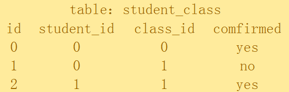 这张表中的两个字段student_id和class_id,分别代表student表中的id和class表中的id,我们将这样的字段称为外键。由于这张表中外键的存在,将学生和选修课联系起来了,即关系数据表中“关系”的含义所在。