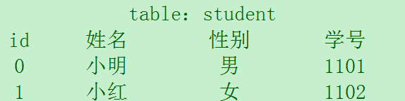 关系型数据库中存储一张张的表,类似Excel表格。如图,id、姓名、性别等称为字段,每个字段为一列,而每行的数据称为一条记录,例如小明的所有信息。另外图中有一个主键id,其值对应一个数字,每条记录的主键不同,这样就可以通过id唯一确定一条记录了。