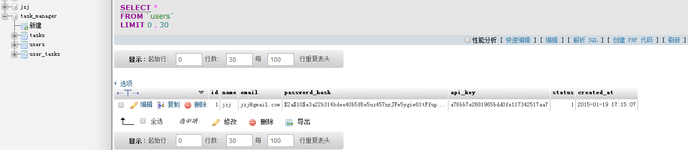 在phpmyAdmin中可以看到,新注册的用户信息已经保存在数据库中了。