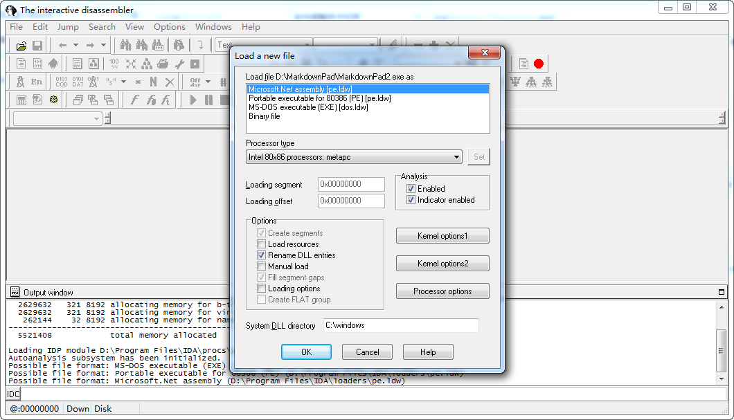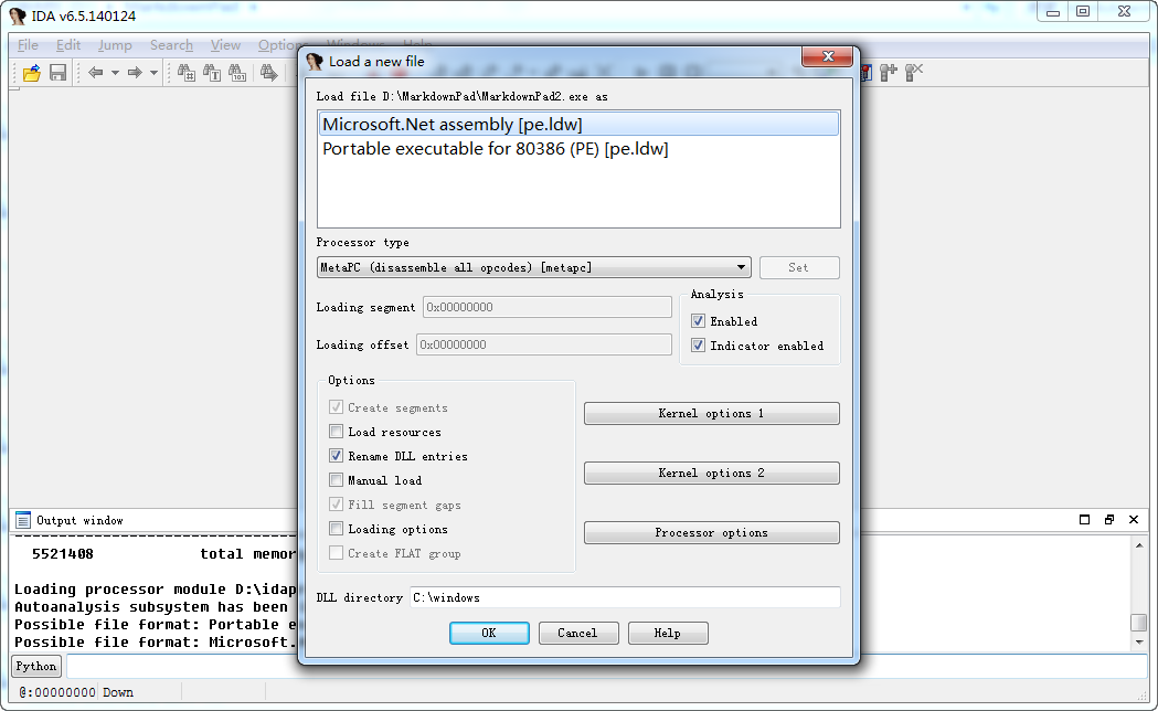 网上找了找,也没有找到原因。于是重新下载了一个IDA 5.5进行尝试,按默认值,点击OK,反编译成功。估计前面没能成功反编译,是因为IDA软件自身的问题。