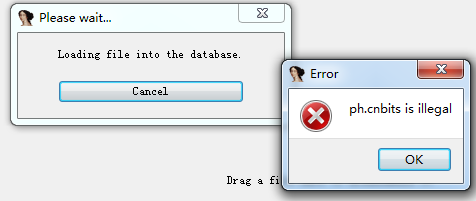 然后弹出窗口报错,ph.cnbits is illegal,具体原因不详