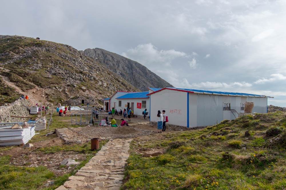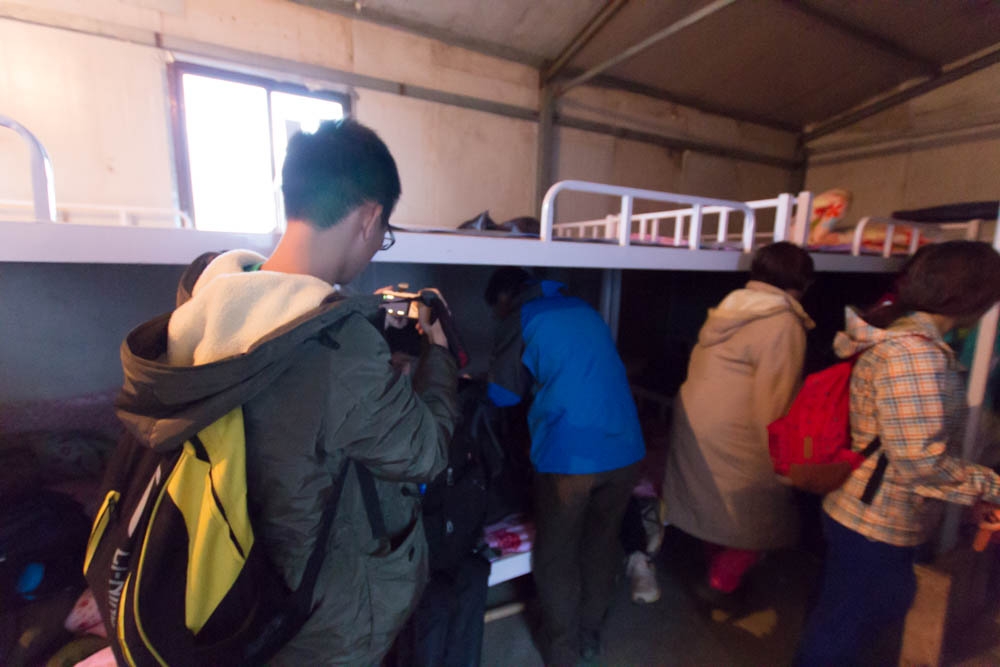 我们准备好五个人的住宿费用,80元/人,赶紧塞到了老板手里,让她给我们安排床位。由于人多,我们五个人被安排在了下铺的两张双人床上,毕竟快到山顶的地方了,想着山上反正气温低,挤一挤将就下也能睡。