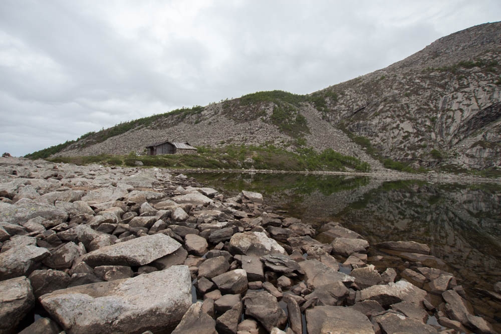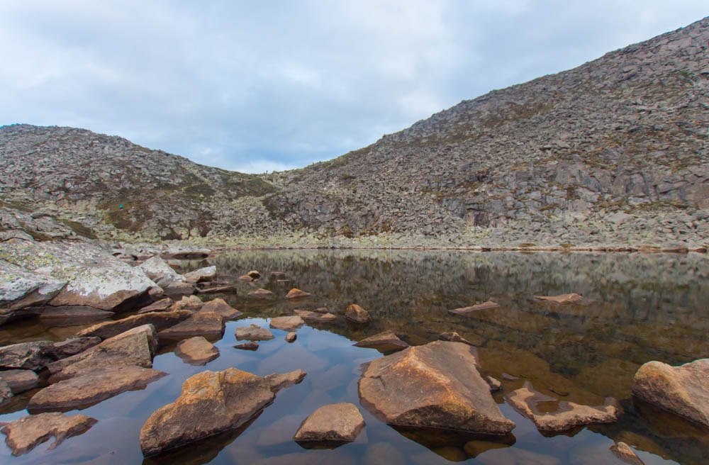 大概7:30,到达三爷海,途中发现又有一个未知的湖泊,后来确认是玉皇池。果然是南线,远远的看见南边的山由于阳光充足,都是绿的;而回头看北边,都是光秃秃的石海。