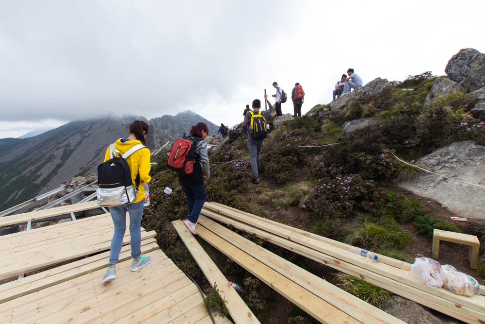 我上到拔仙台的时候,很多游客都已经下来了,路上问了几个人,他们说看不到日出,就在半路上下来了。但是我还是得坚持去顶峰,好不容易来一趟可能都不会有第二次了,而且年轻人估计都已经在顶上等我了。