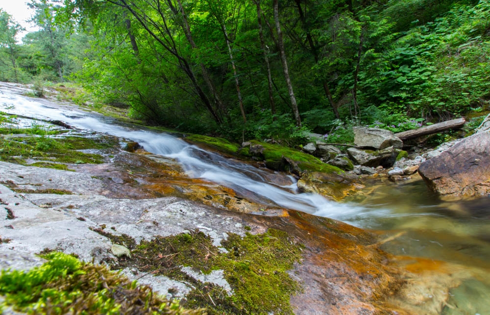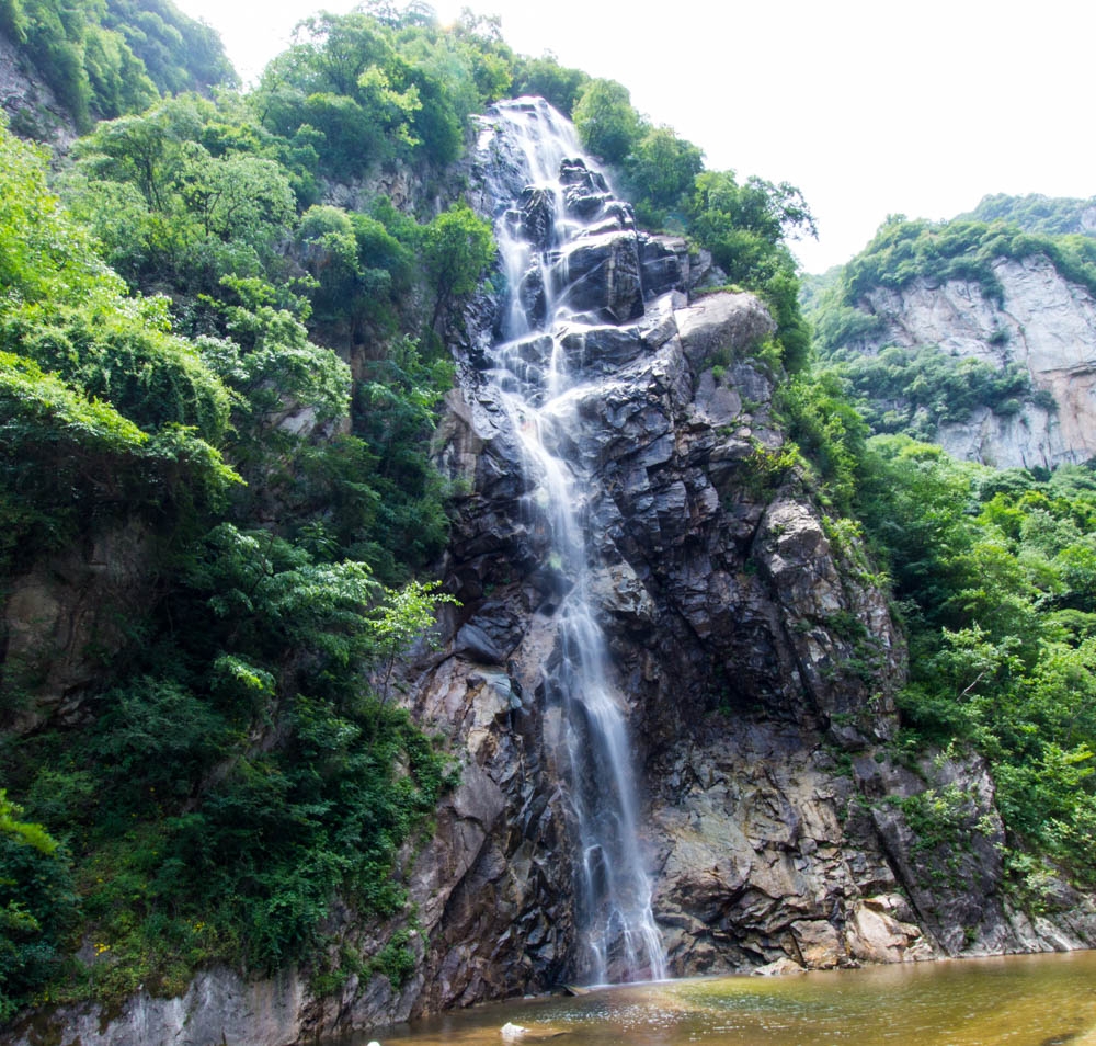 瀑布如丝绸一般,终于快到三合宫瀑布了,也不担心没水喝了。