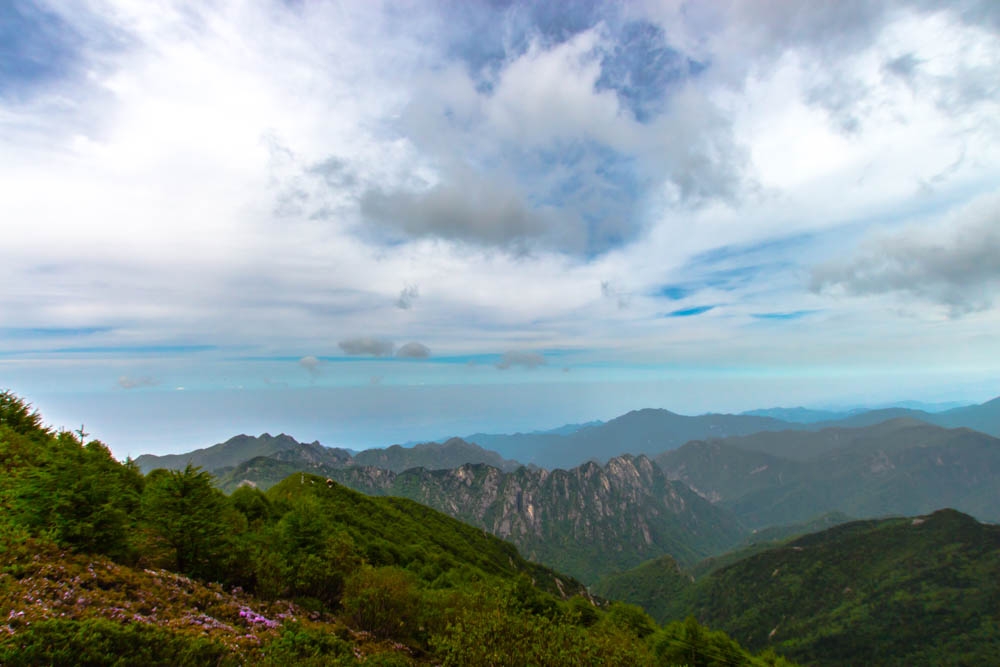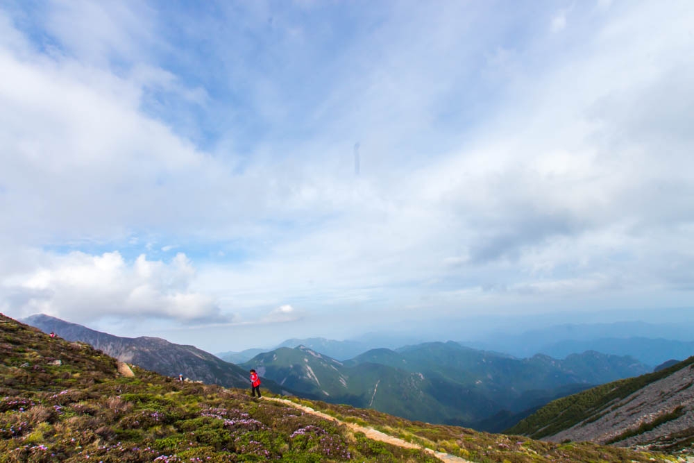 此时海拔3200m,风景已经非常棒了,秦岭很多海拔一两千多米的山,翠华山、华山、终南山等,都已经被我们踩在了脚下。