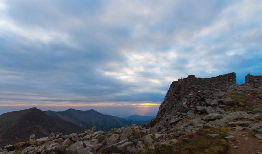 6:15,我们从拔仙台下来,金色的阳光冲破云层洒了下来。