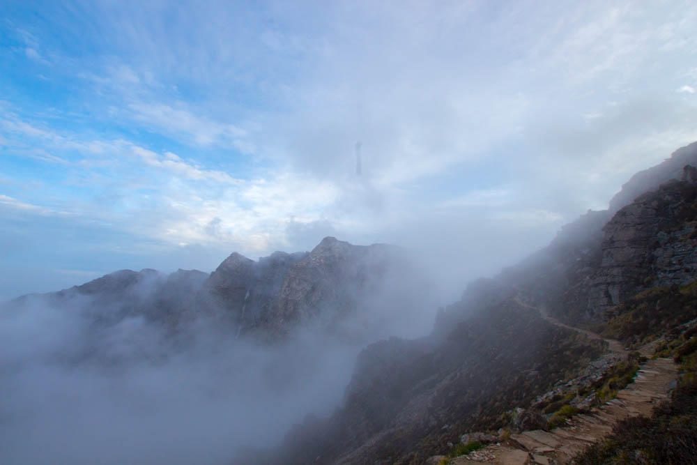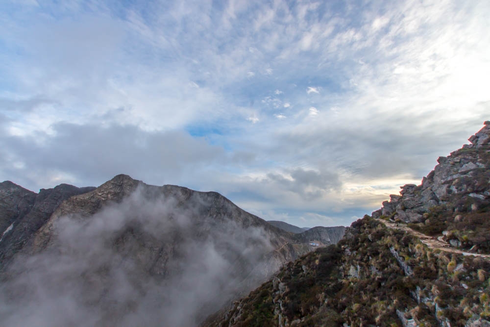 吃饭和休息了大概20分钟,刚好雨也停了,又继续走。10:00终于到了南天门。这段路上我感觉体力已经有点不够了,有些累,高原反应导致的头疼也还没完全好,其他几个同学状态比我好一些。