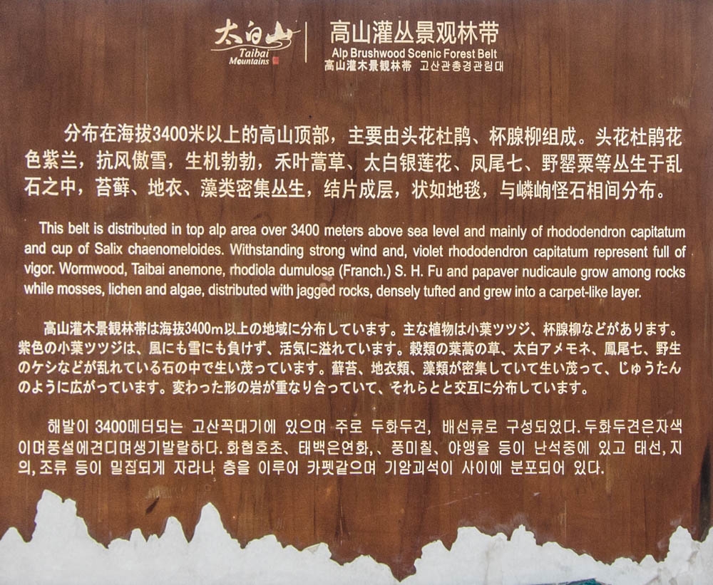 随后进入太白山保护区。看网上的照片,在四月份的时候,这里还是大片积雪;我们是六月份上山的,所以积雪已经化了;而在我们去的前一周,据说石缝里还有没融化的积雪。另外听说有些时候进入这里还要收门票,我们当时没收。