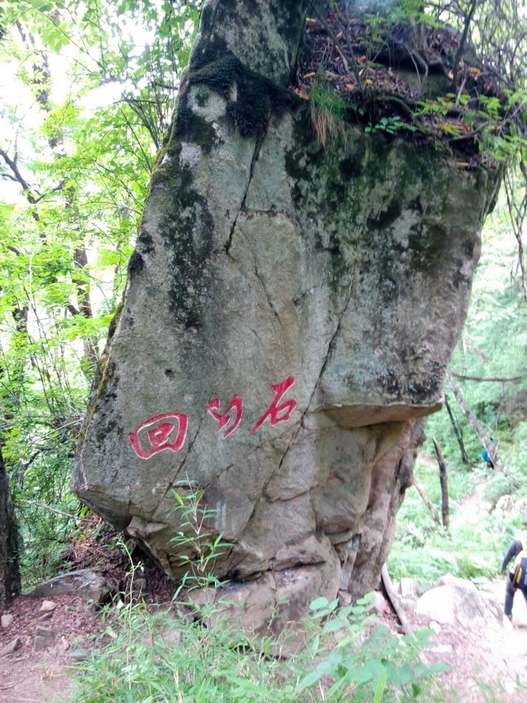 12:35,到达回心石。早晨从南线上山的游客,如果到达回心石后,还能回心转意原路返回当天下山,否则过了回心石就只能继续上山了。