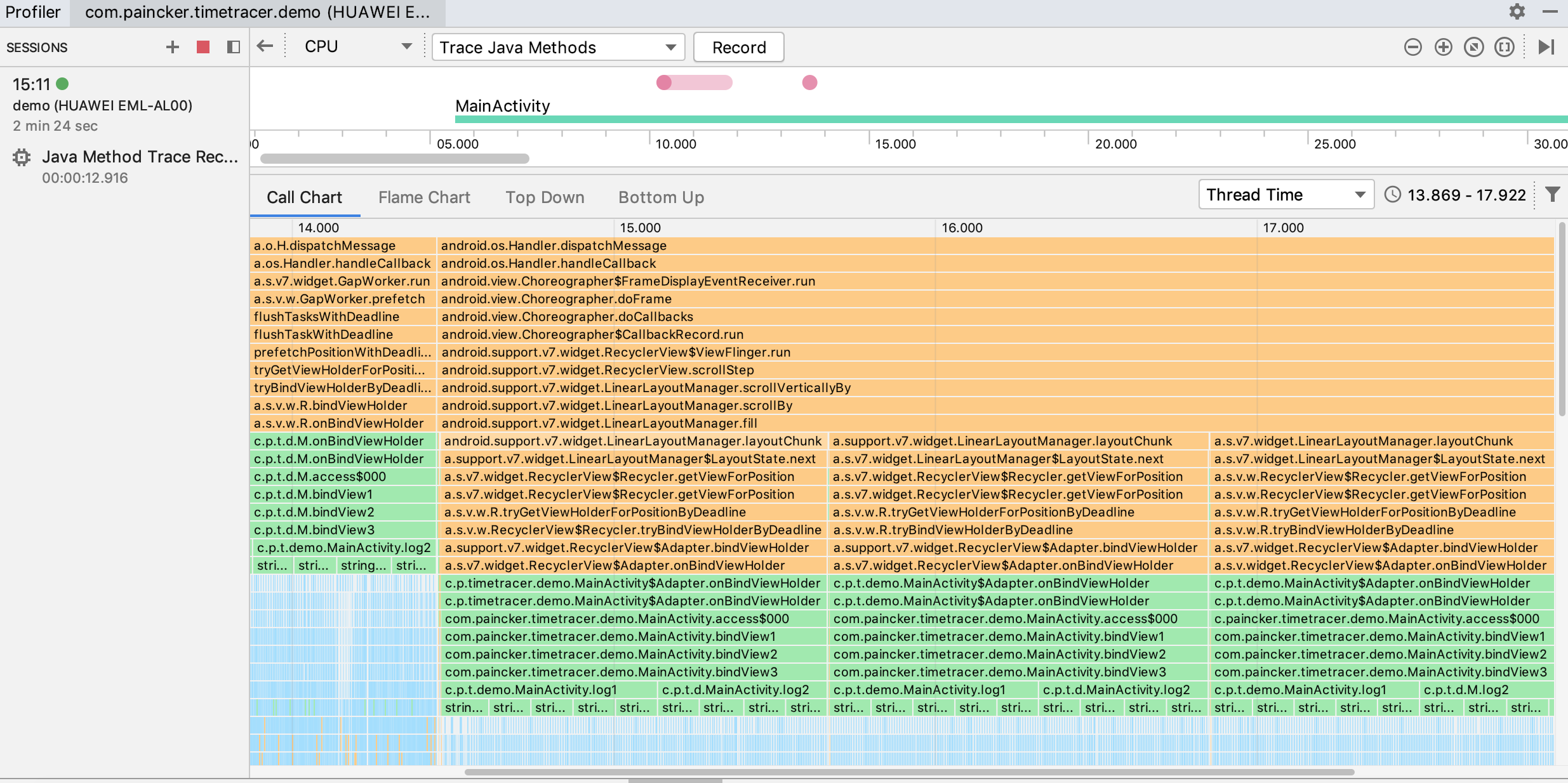 下图为使用Android Studio自带CPU Profiler生成的结果(Trace模式)。
