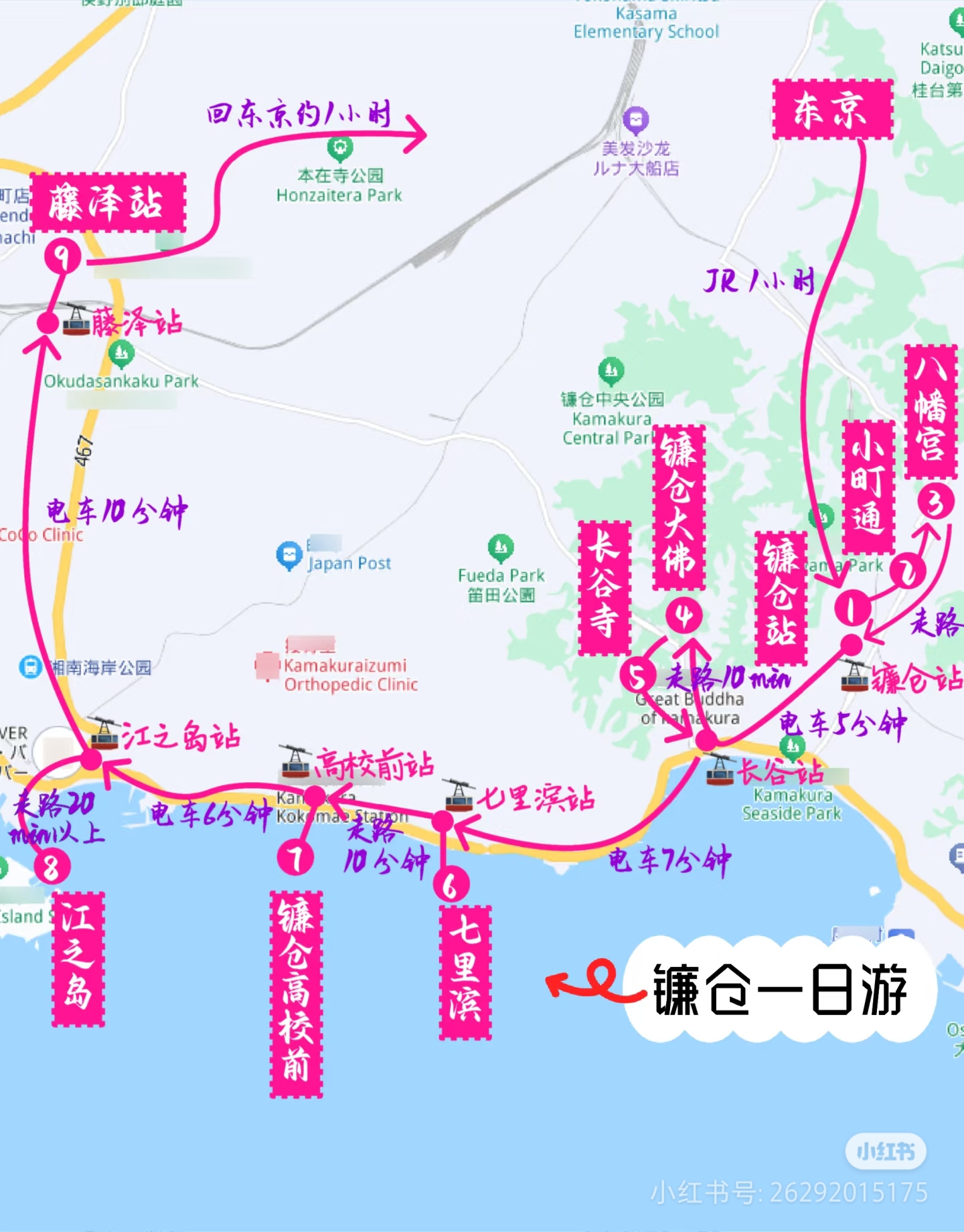 - 除了东京城市的繁华,东京周边的郊区风景也很值得一看。可以留一天时间东京出发当日往返去镰仓,镰仓靠近海边风景非常不错,有《灌篮高手》动漫的经典取景地镰仓高校前站。伊豆也是个不错的选择,有新海诚《你的名字》里巨大环形火山口的取景地。我们实际去的是镰仓。
