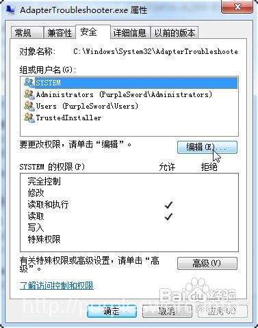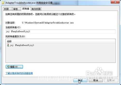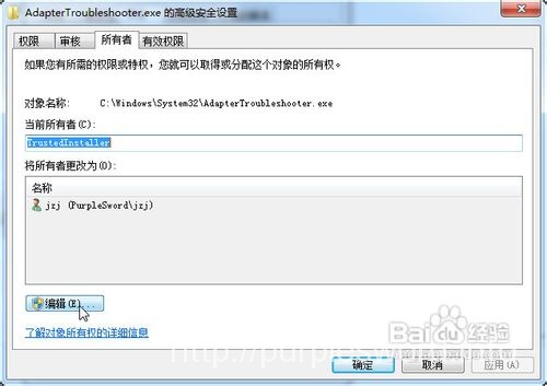 一般情况下默认所有者为TrustedInstaller(没有影响),单击“编辑”按钮