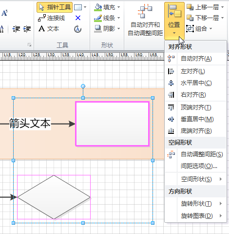 选中多个对象,使用位置可进行排列。对于一些常规的对齐方式,可以尝试自动对齐和自动调整间距选项(鼠标移到按钮上可以预览效果,单击应用效果)