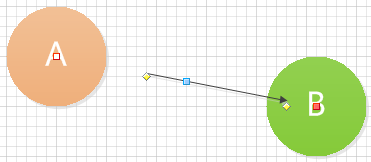两端的蓝色锚点可以控制箭头的断点,例如可以将其分别拖动到两个圆形的中心,如图。